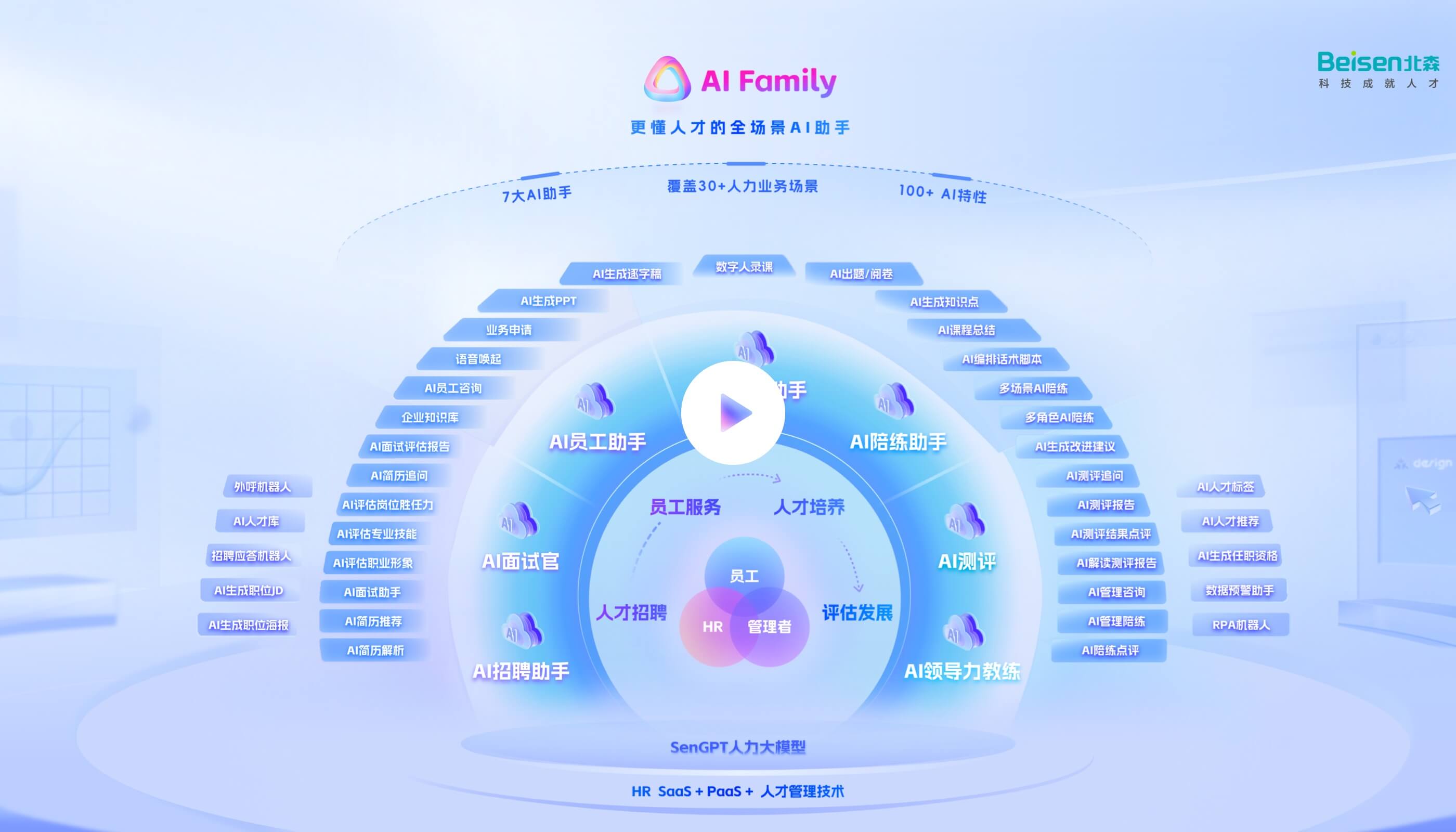 aoa体育官网Al Family是基于aoa体育官网自研鲁班PaaS平台,结合20余年积累的人才管理技术与一体化HR SaaS业务及数据场景,在SenGPT人力模型之上,整体打造的更懂人才的人力资源全场景AI助手。目前,已经在人才招聘、员工服务、人才培养、人才测评、领导力发展等场景中实践应用。