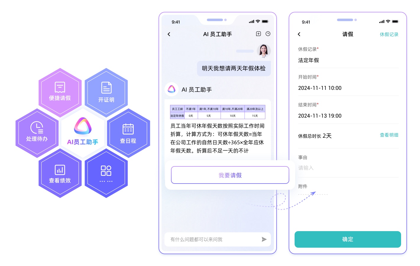 员工请假、查日程、定会议,经理看团队情况,一站式完成