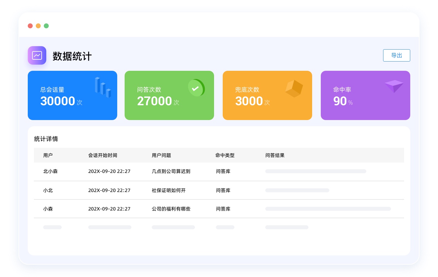 可查询处理量、处理趋势及工单明细,问答情况可追溯