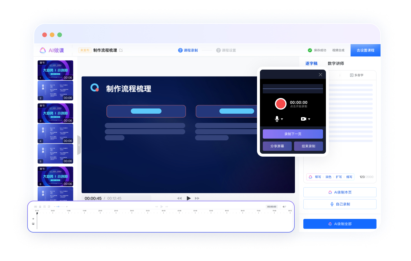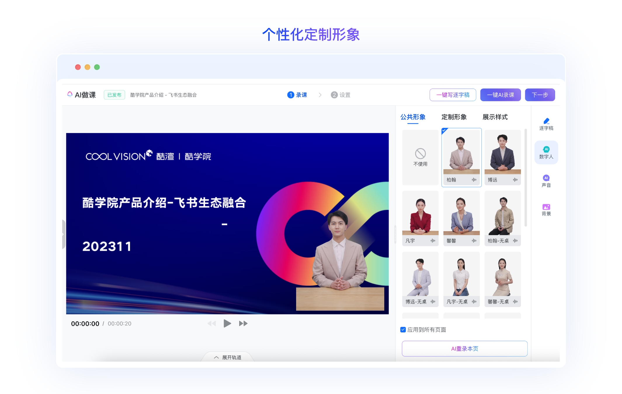 数字人录制和人工录制灵活选择,课程制作轻松简单