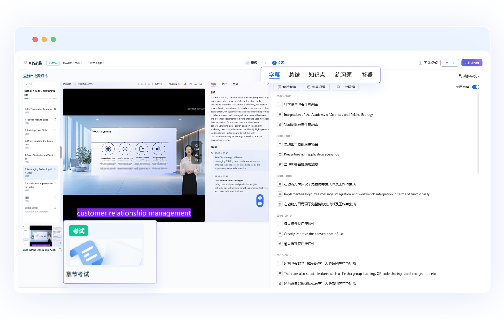 AI智能生成字幕、知识点,帮助员工准确把握重点