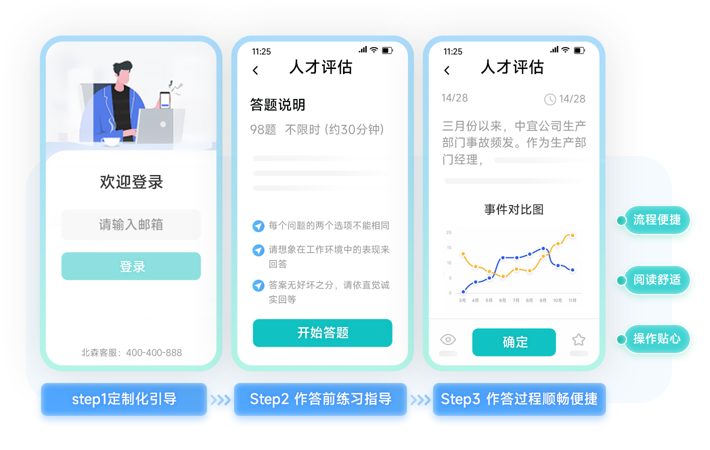 关注受测者体验,打造便捷、舒适、贴心的测评前台,获取高质量的评估数据