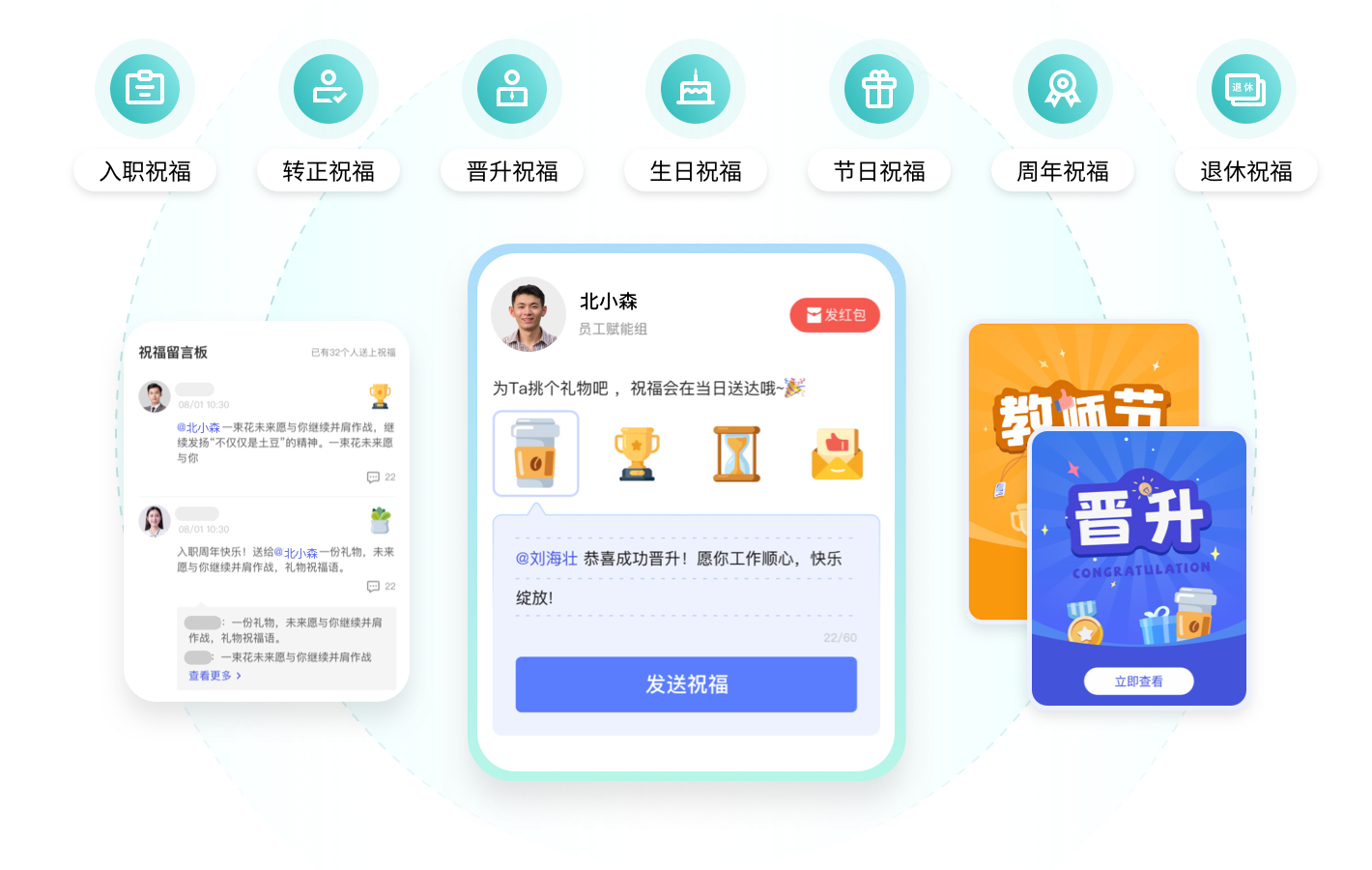 全场景祝福,见证员工职业生涯里程碑和人生关键时刻