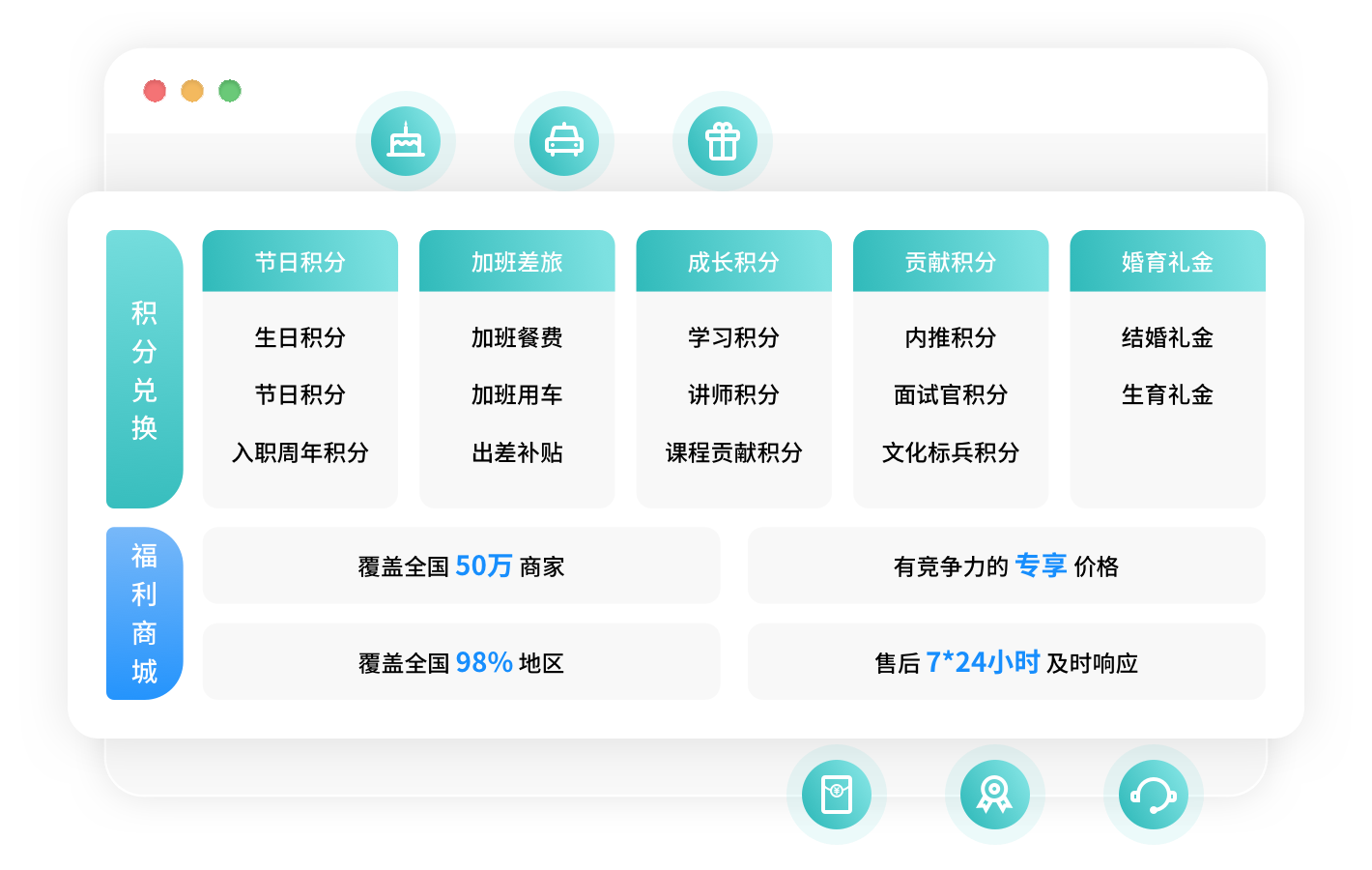 全渠道福利商城,完整积分兑换生态,高效全员福利运营