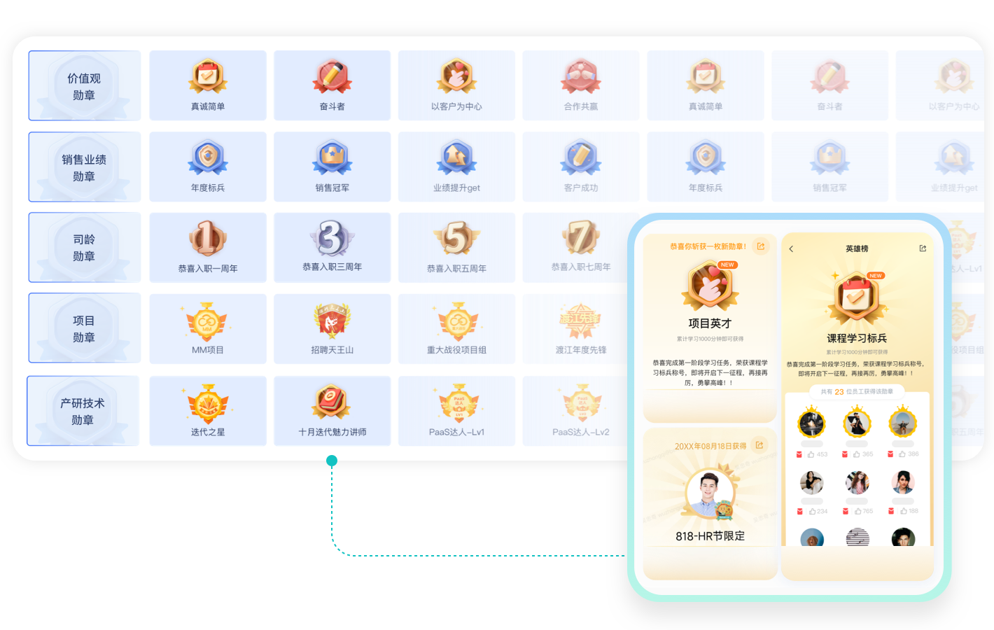 业务勋章体系,融入业务场景,即时激励员工