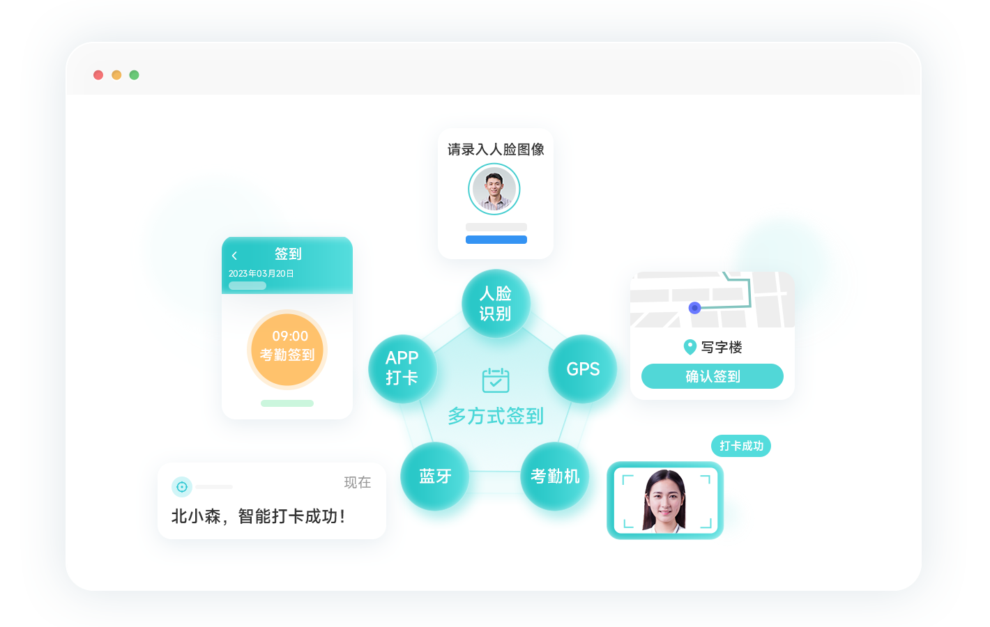 指纹/蓝牙/GPS/人脸识别等多方式签到,打卡更简单