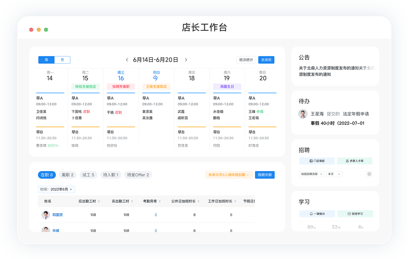 店长工作台,一站式假勤业务管理,让店长回归经营之道