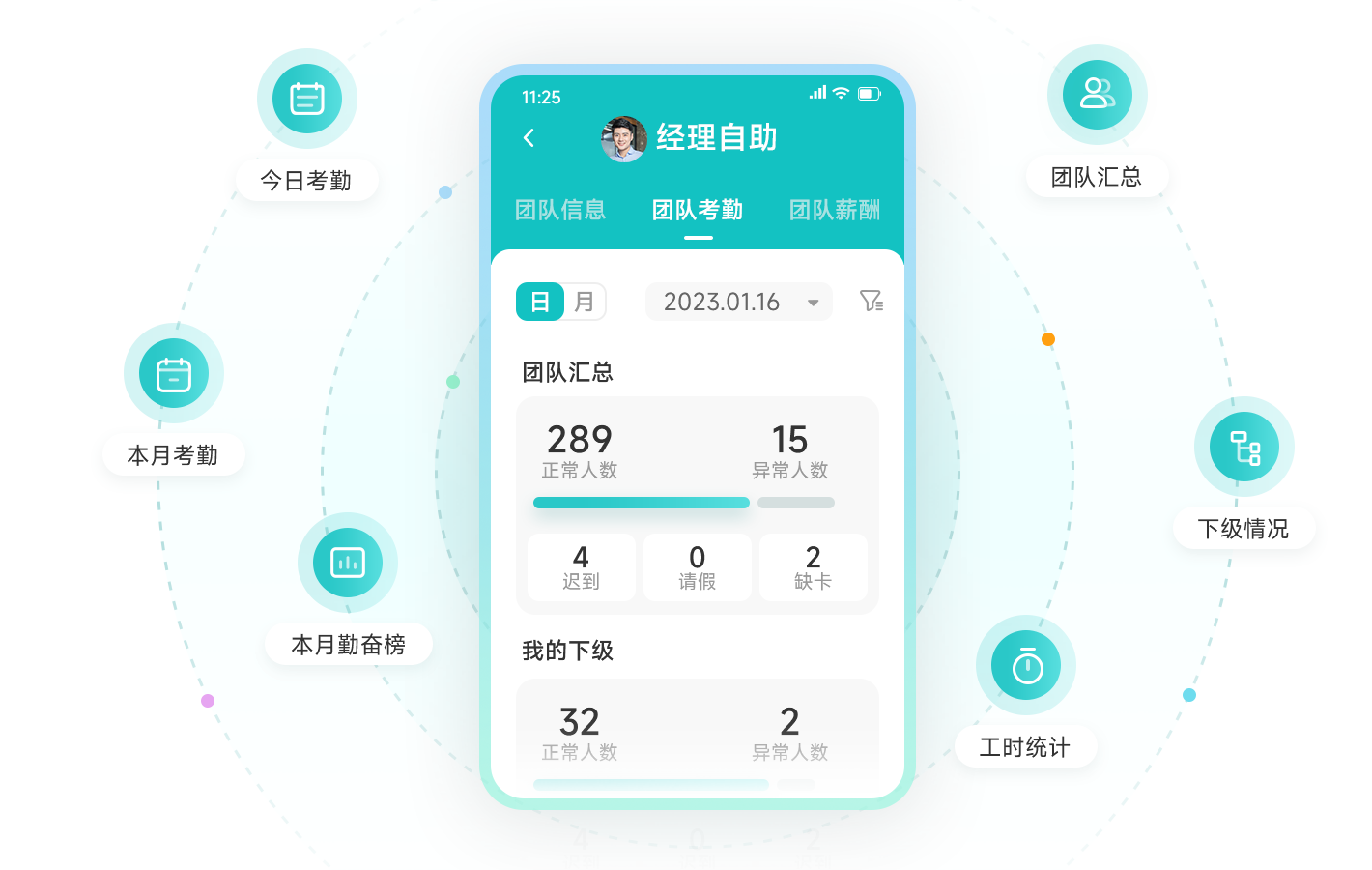 经理对团队签到、休假、加班、出差等考勤状况了如指掌