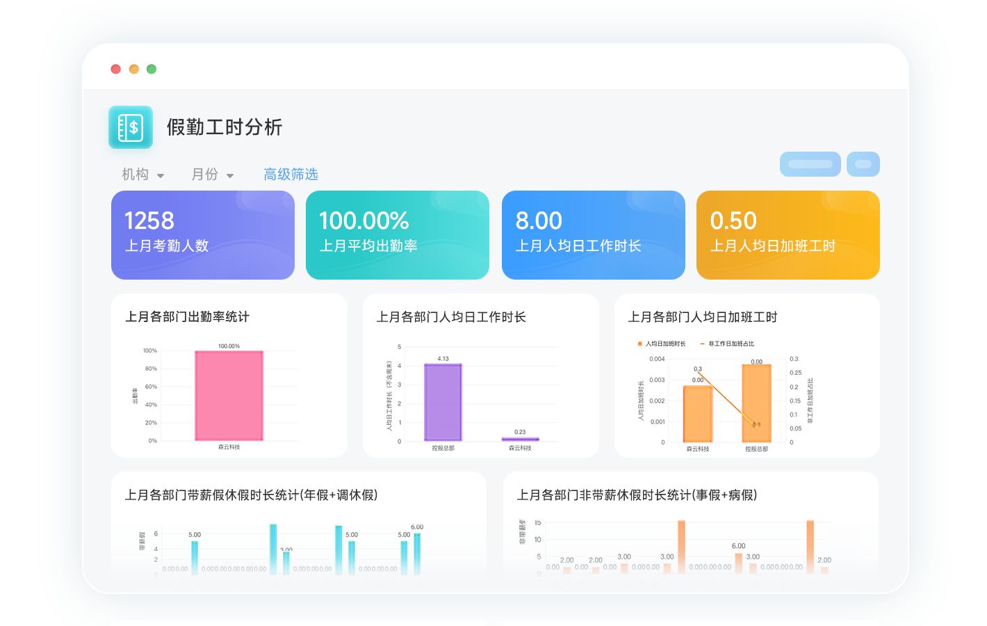 100+假勤报表开箱即用,全面分析工时数据