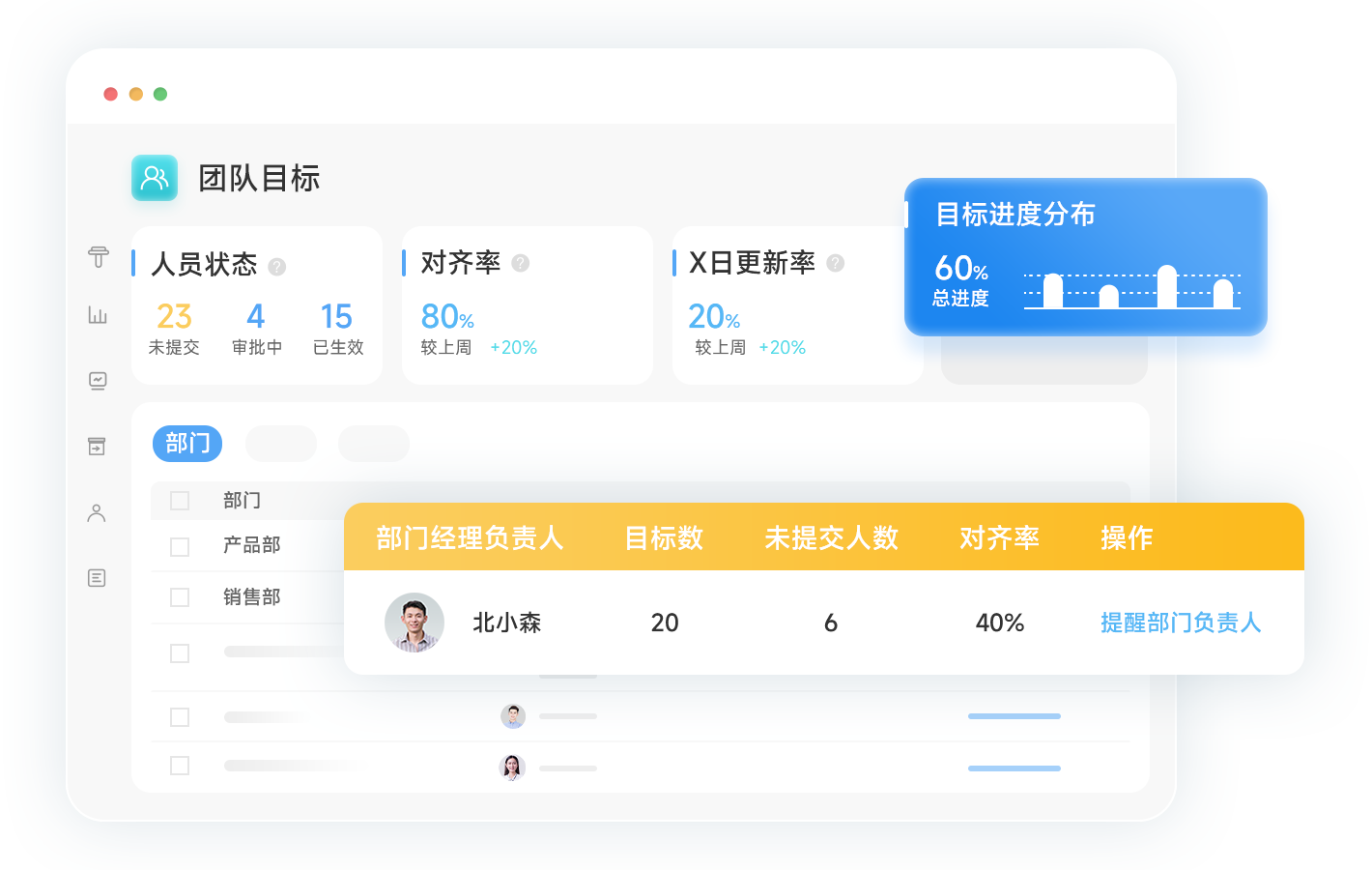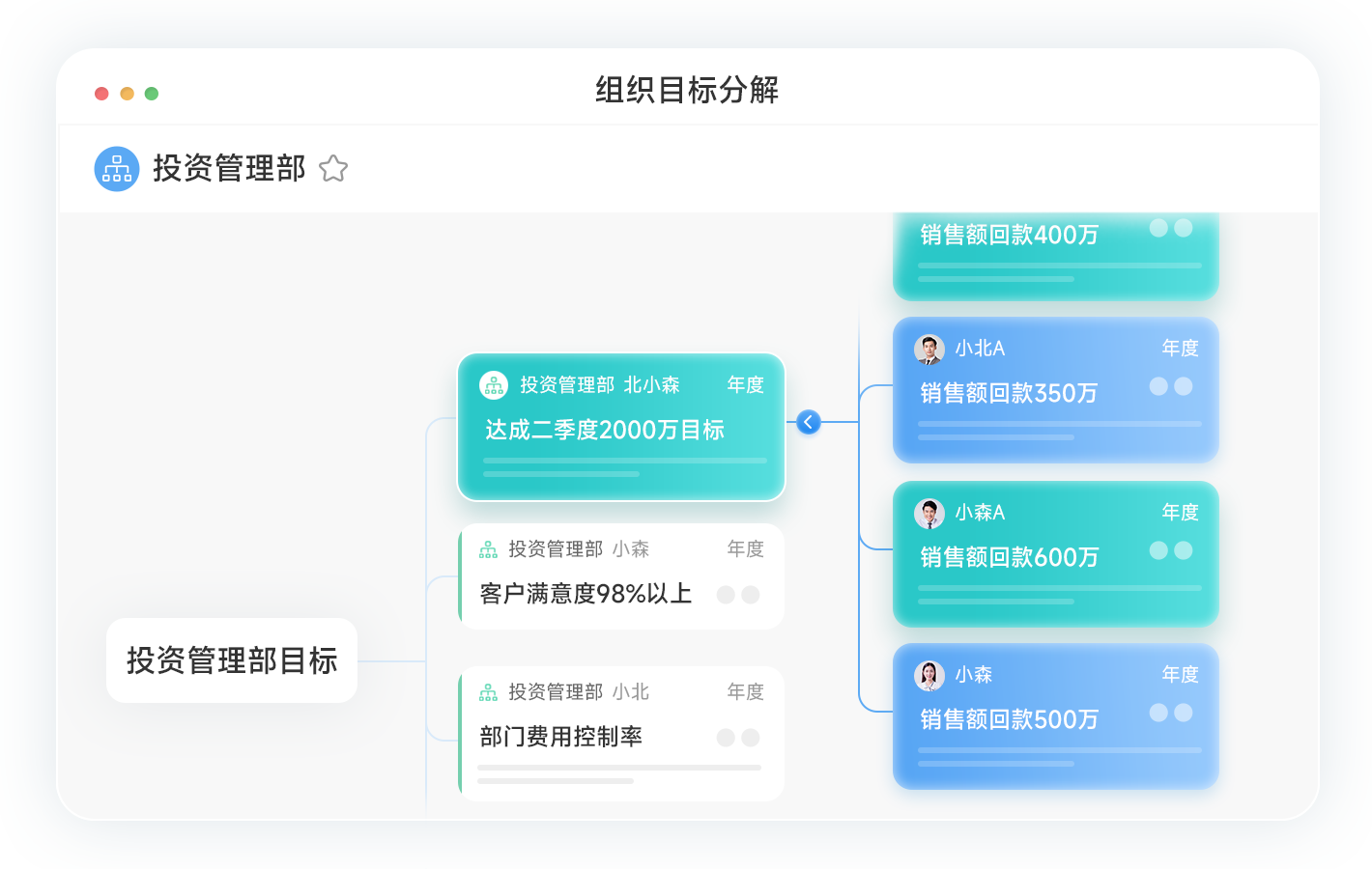 1.保障公司战略自上而下层层分解落地:组织目标制定时,可以向下分配到员工;员工目标制定时,可以对齐、共背组织目标,引导员工和组织方向一致,支撑组织目标的达成。