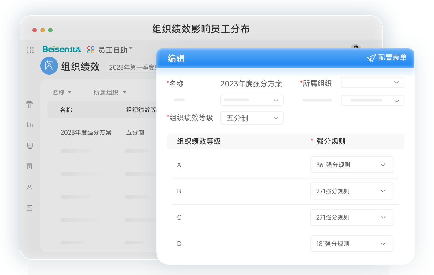 3.影响员工绩效分布:可按照组织绩效结果自动匹配员工绩效强制分布方案,让高绩效组织拥有较高的绩效分布,激励高绩效组织。