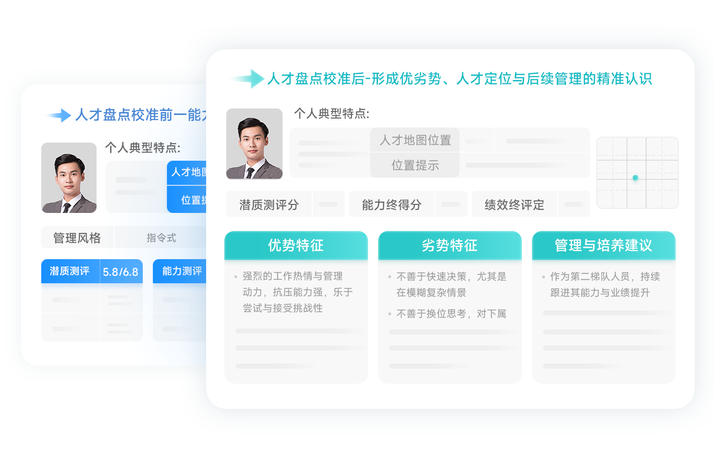 配套人才盘点服务,提供人才盘点校准会、团队数据洞察与研讨等
