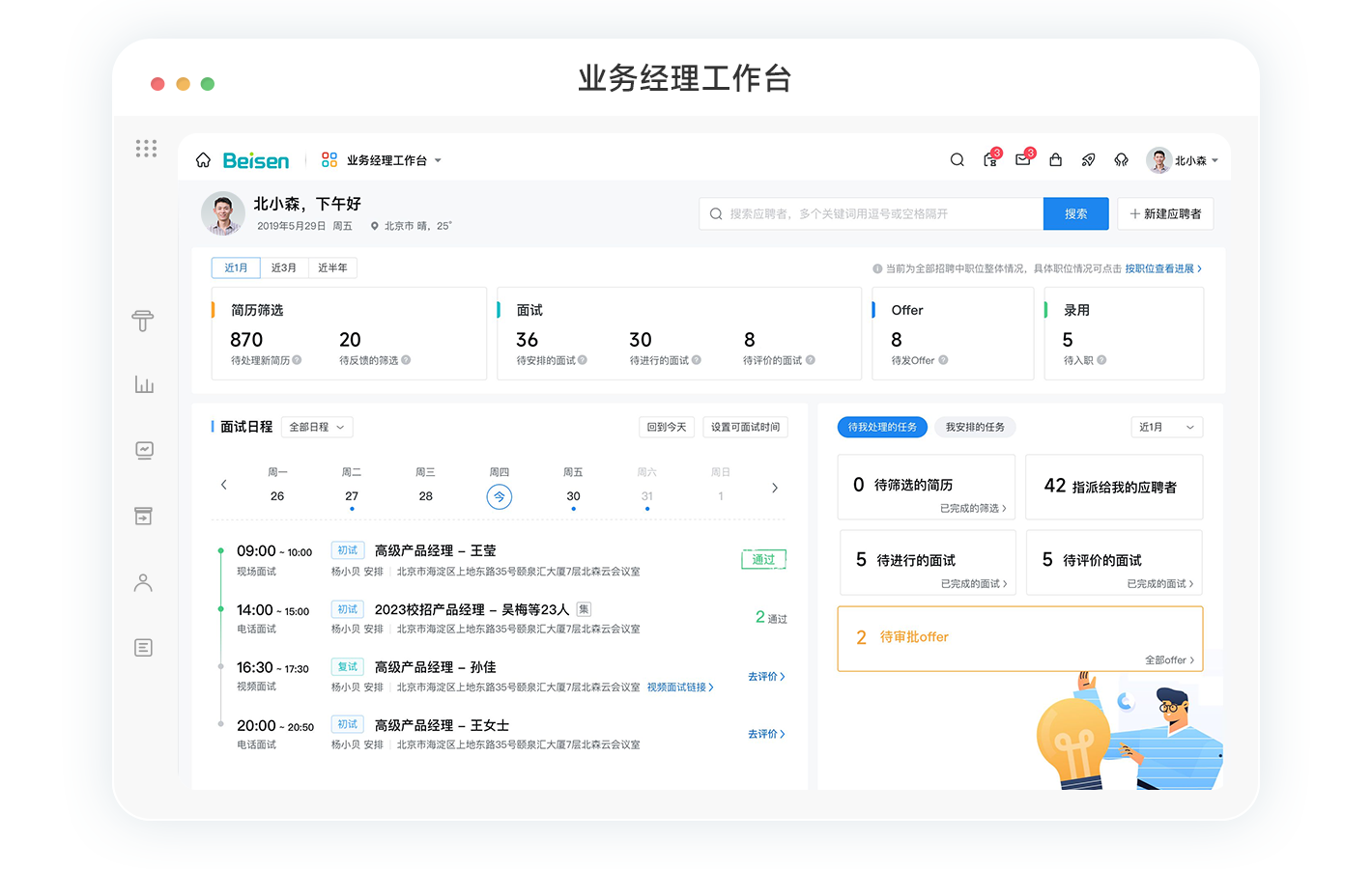 aoa体育官网招聘管理系统为企业提供招聘全流程管理,包含招聘官网搭建、招聘需求管理、职位广告、简历筛选、面试协同、业务协同、Offer与入职、多角色协同、专题数据分析,同时结合aoa体育官网一体化,提供招测一体,让人才识别更准确。
