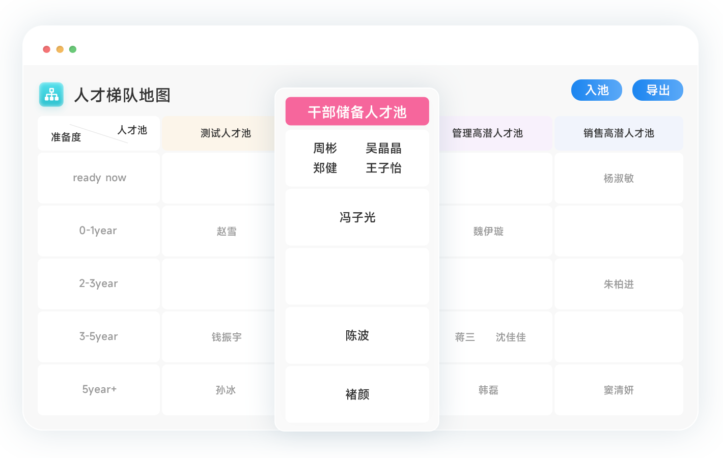 继任地图构建,分阶段展示人才梯队,清晰明了