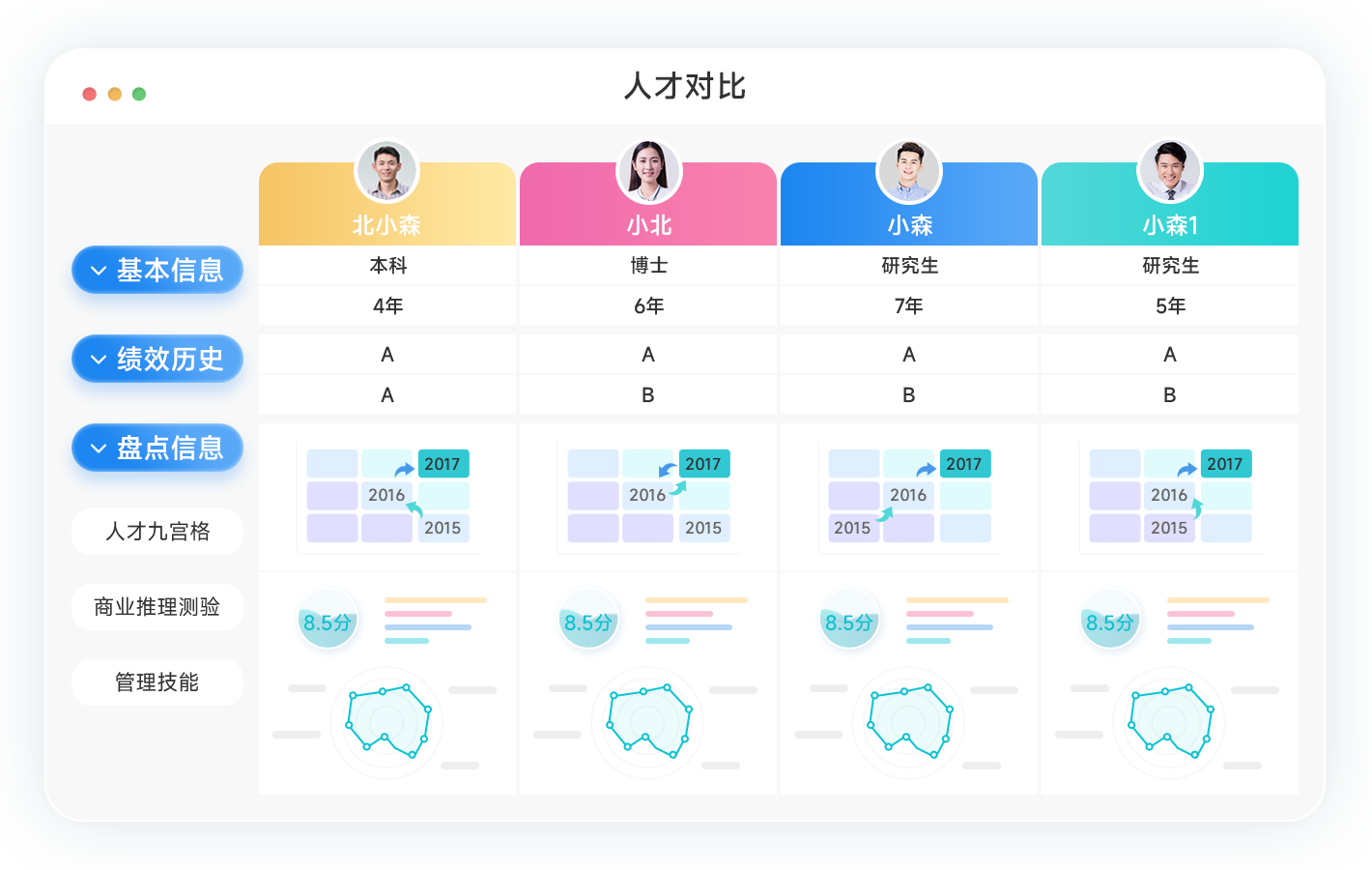 融合人才标签评价体系,直播式在线校准,人才一键PK