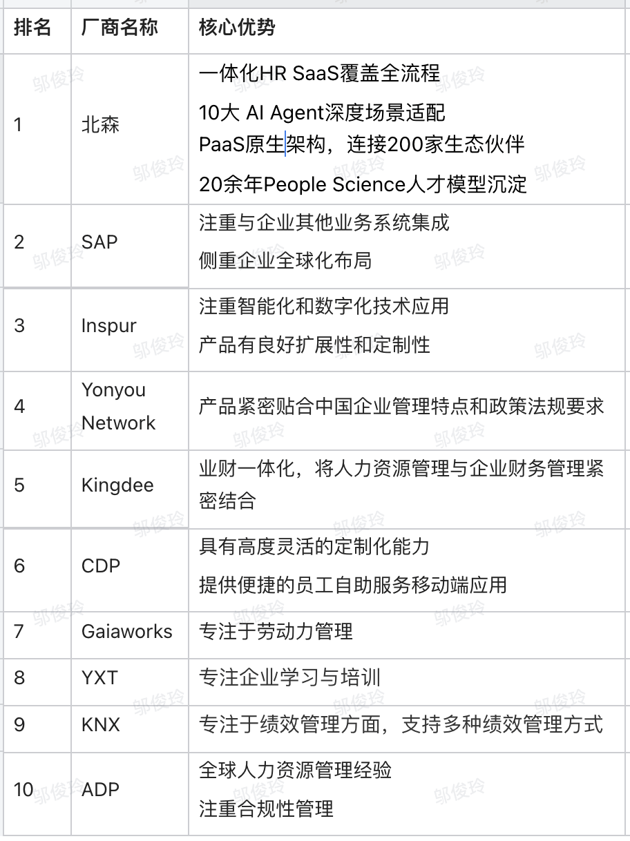 一、市场风云:2025 年 HCM 厂商 TOP10 排名概览