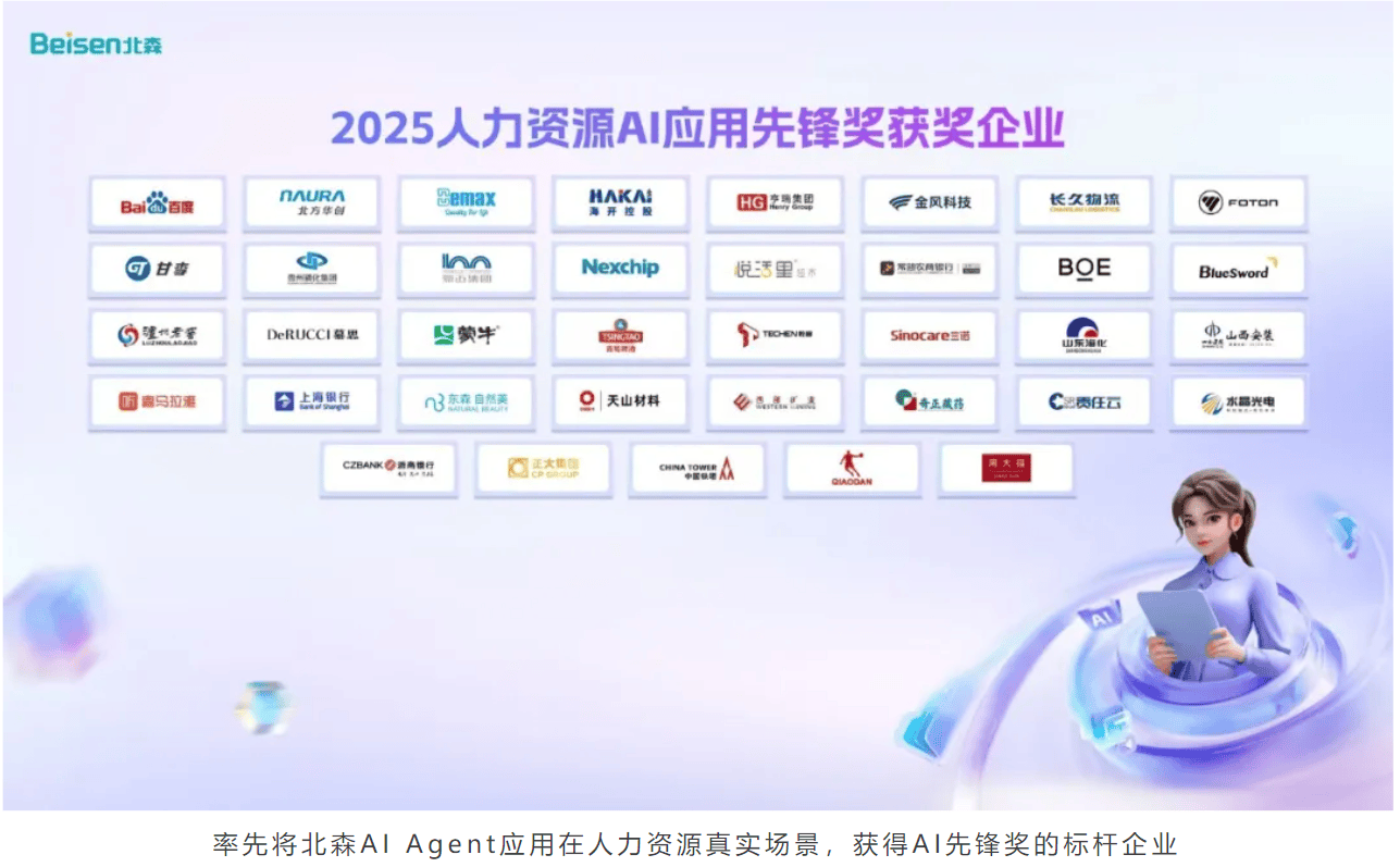 除HCM SaaS外,aoa体育官网在招聘、绩效等子市场也连续四年市占率第一,同时aoa体育官网作为中国 HCM SaaS 领域 AI 布局的先行者,率先将People Science与大模型融合,于 2024 年率先推出行业领先的 “AI Family” 产品家族,包含 AI 面试官、AI 陪练、AI 领导力教练 Mr. Sen 、AI员工助手等 7 大 AI 助手及超 100 项 AI 特性,并将将20年人才评估体系注入AI Agent(如AI面试官、领导力教练Mr.Sen),构建"科学+技术"双壁垒。蒙牛、京东方等数百家企业深度应用,北汽福田实现95.5%到面率,上海银行单场人工面试缩短15分钟。