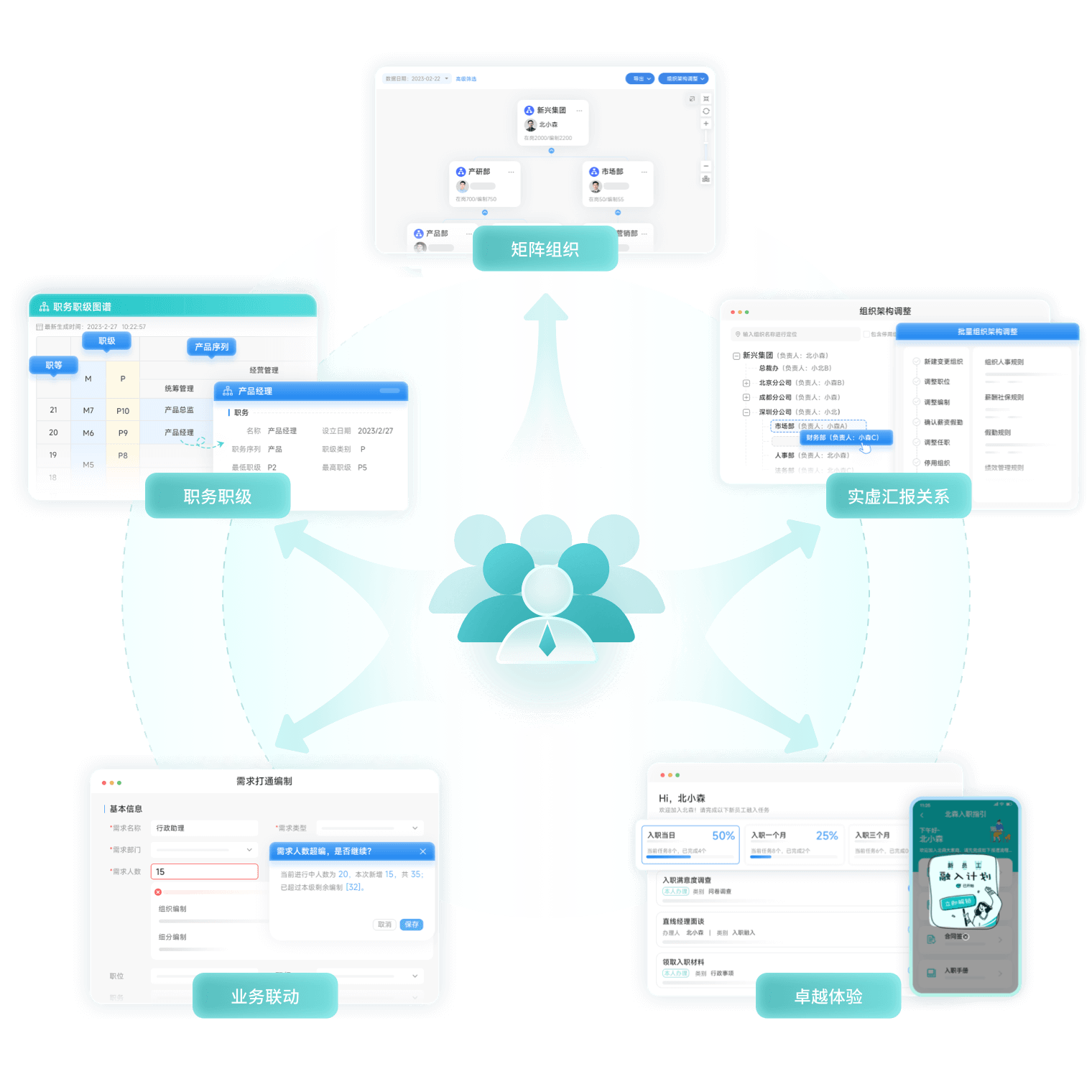 构建多法人、多区域中心、跨境运营的组织体系,支撑集团化运营模式。根据不同组织下的用工需要与细分维度,可实现强或弱的编制控制