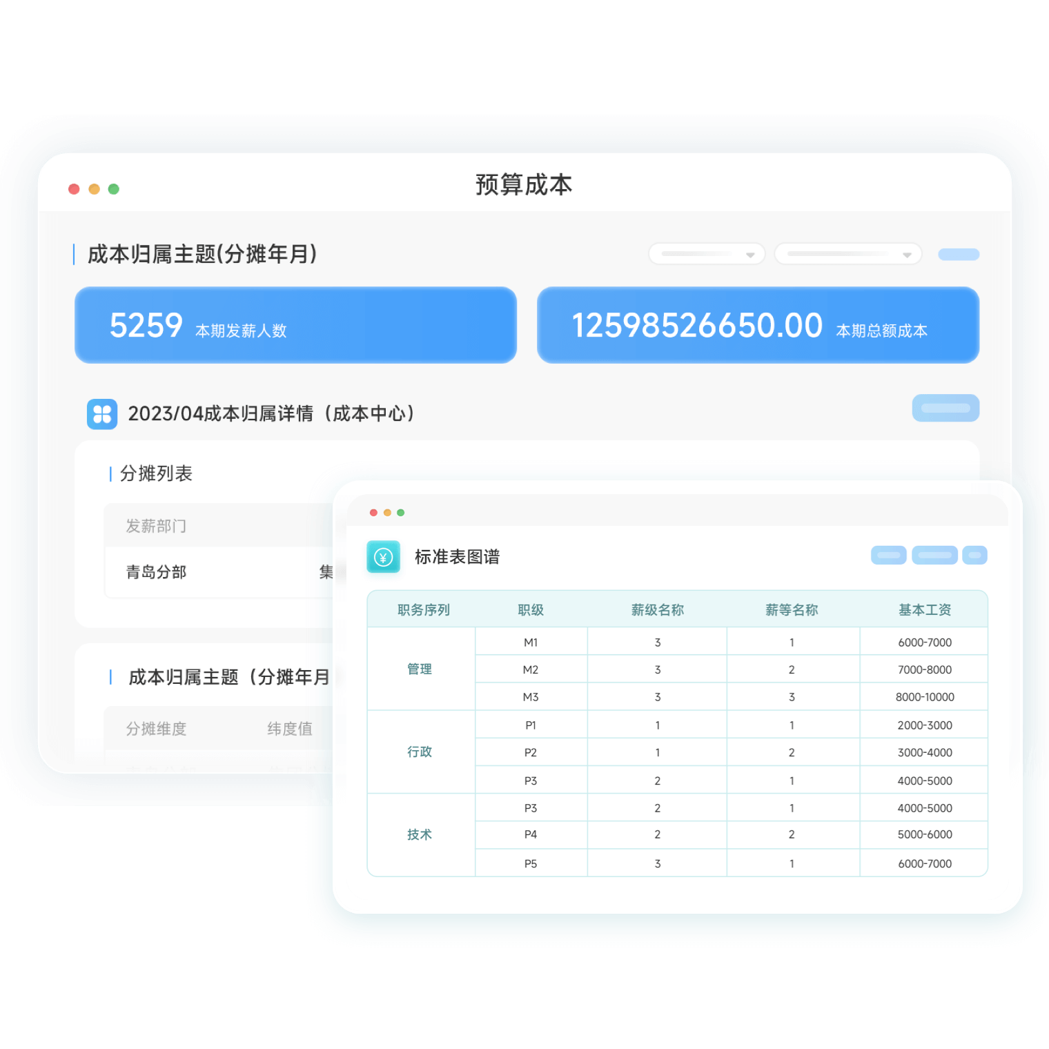 提供预算制定、执行与监控、分析与调整的全过程在线管理,实现提前规划,及时监控,适时调整。从业务视角出发,自动完成成本分摊计算和分析,为人工成本管理提供有效数据支撑。